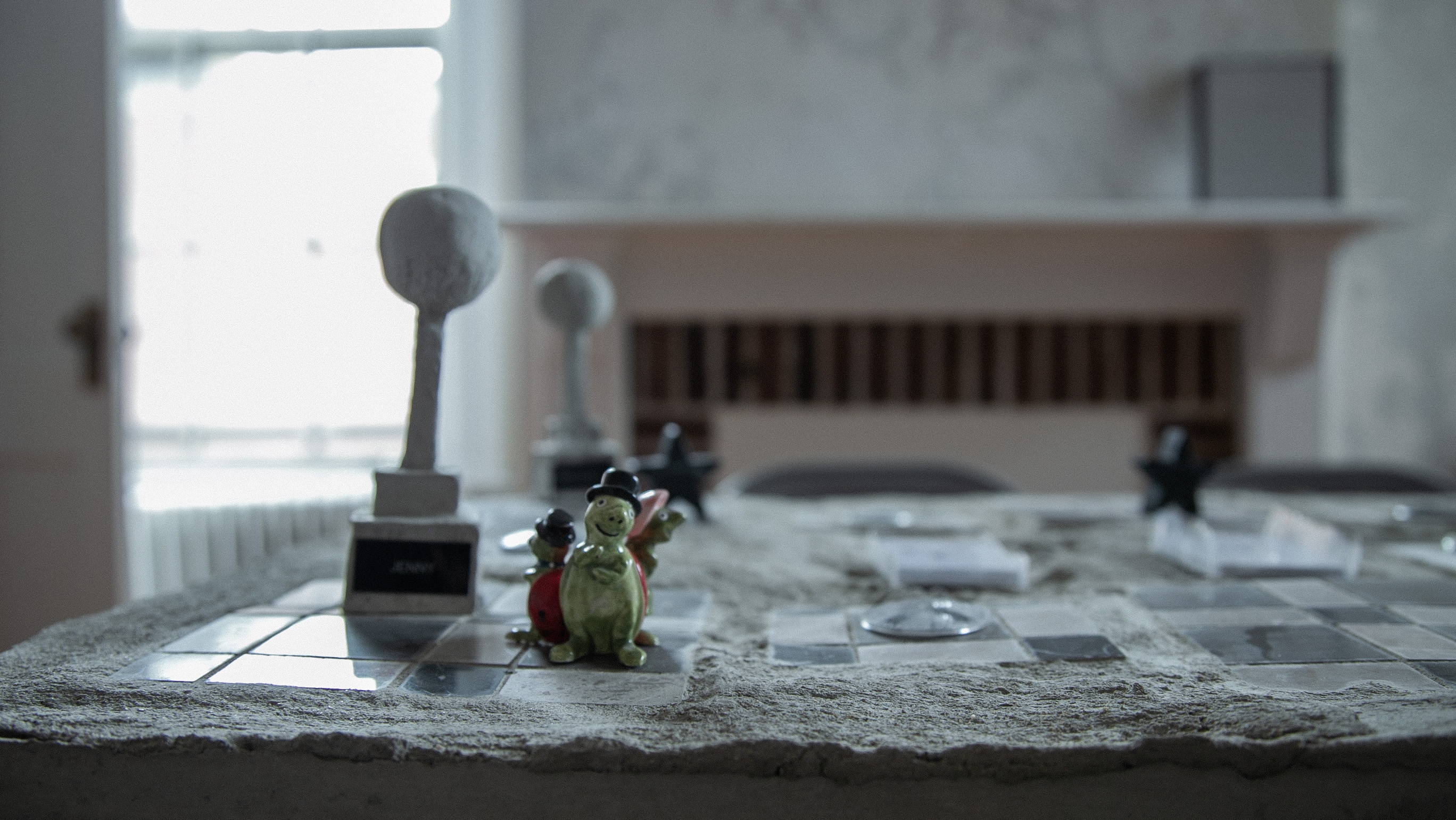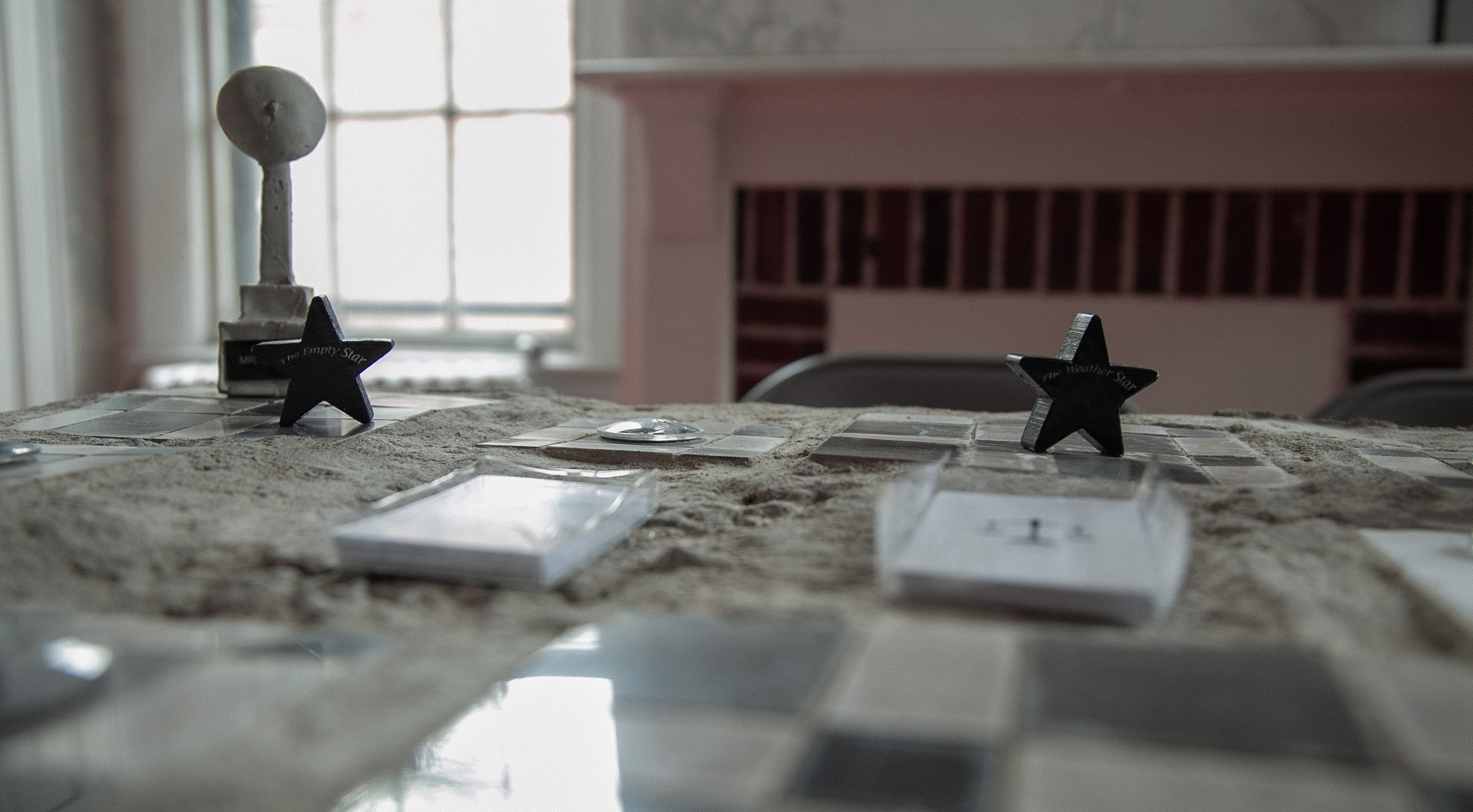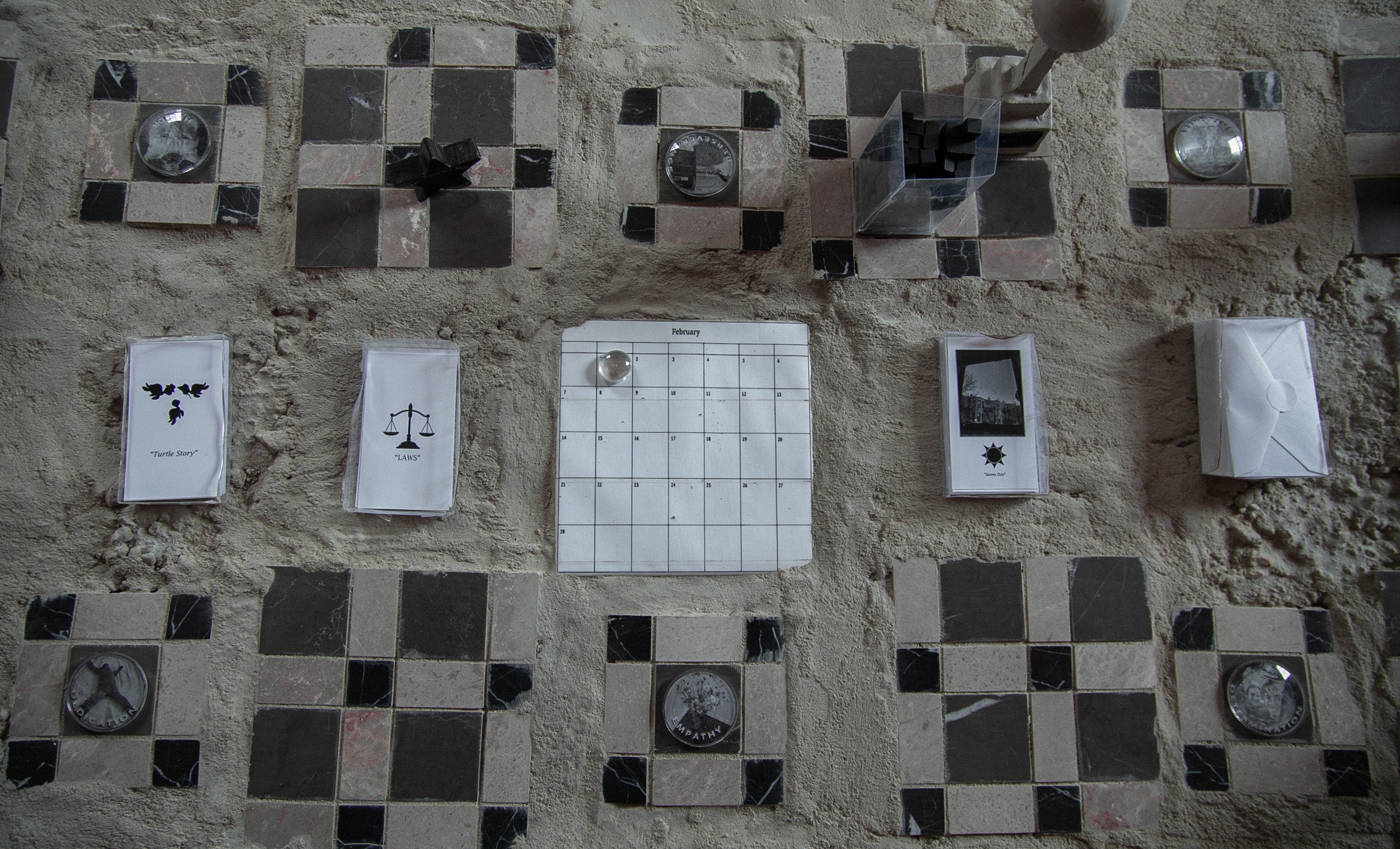Everyday in February, 2021, I took a photo out of my window to document the weather. I used the photos of the weather to create a series of laws and conditions that govern a board game in which different characters go to work everyday in the month of February. To accompany the board game I drew a series of drawings in the style of New Yorker cartoons, displayed a coffee machine that is programmed to make coffee every morning at 8am and crafted a tinfoil bird with a music box that plays “Here Comes The Sun” by The Beatles inside of it.