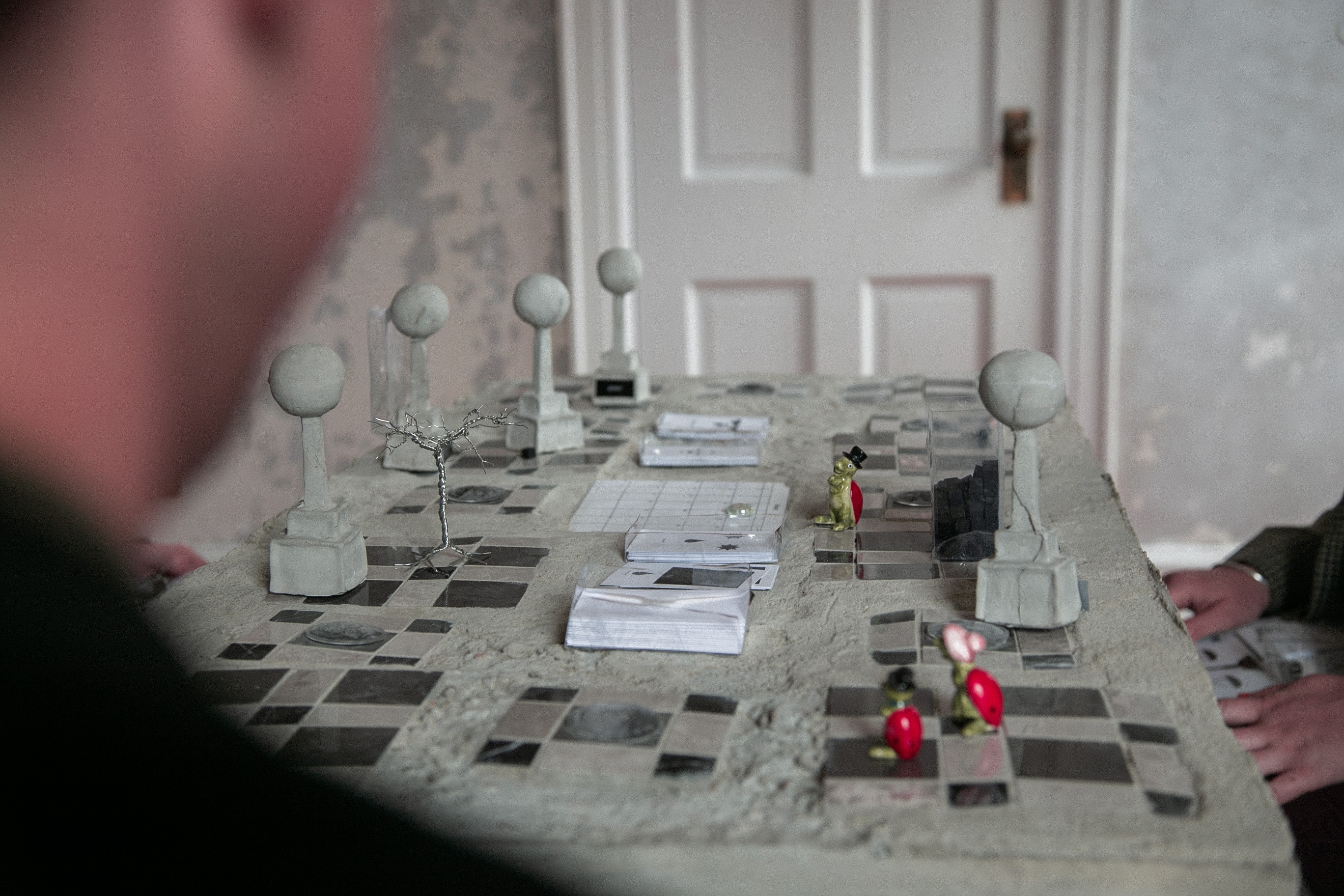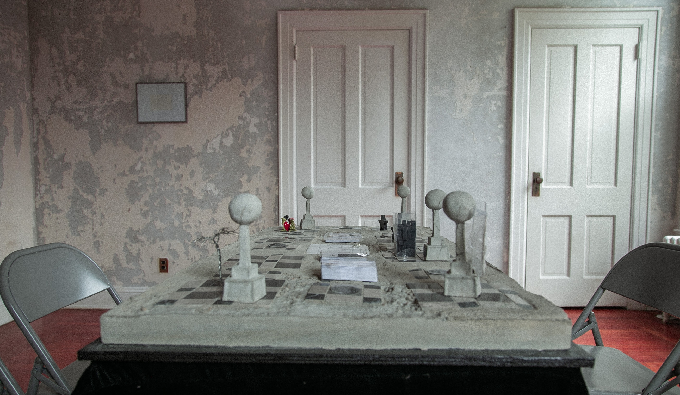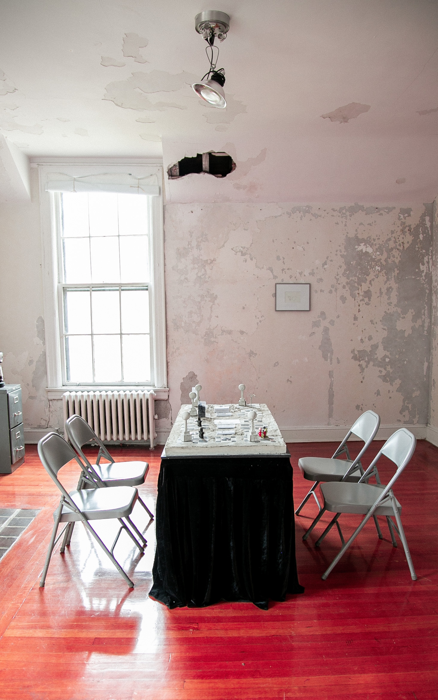 Everyday in February, 2021, I took a photo out of my window to document the weather. I used the photos of the weather to create a series of laws and conditions that govern a board game in which different characters go to work everyday in the month of February. To accompany the board game I drew a series of drawings in the style of New Yorker cartoons, displayed a coffee machine that is programmed to make coffee every morning at 8am and crafted a tinfoil bird with a music box that plays “Here Comes The Sun” by The Beatles inside of it.